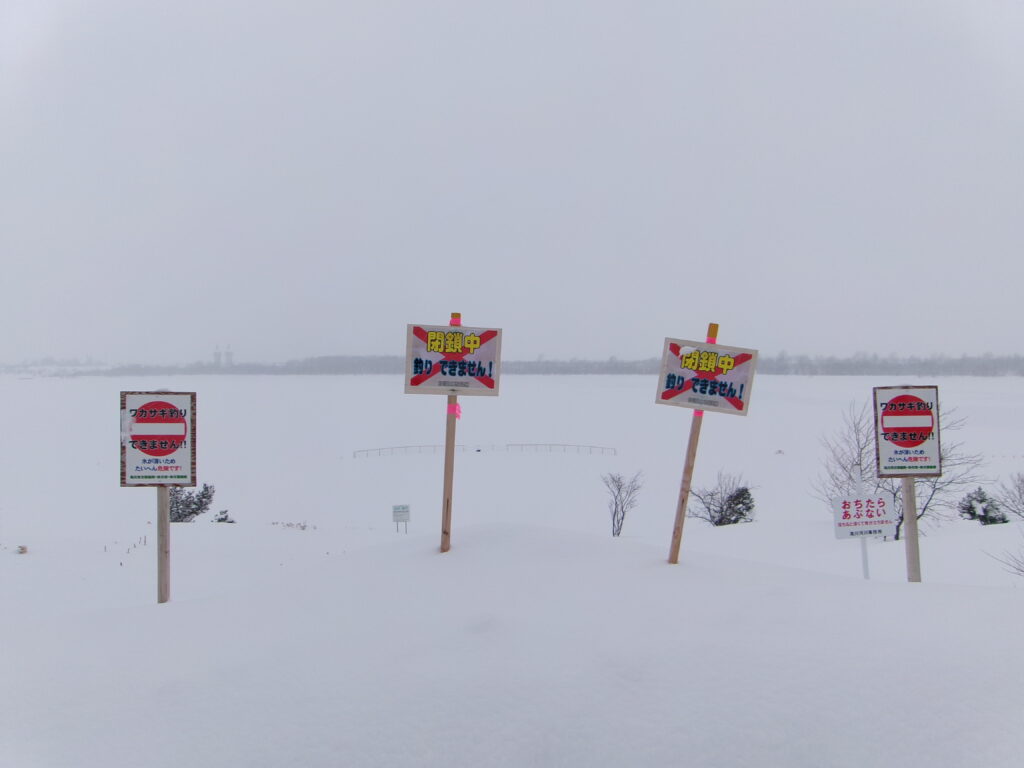こちら側ではワカサギ釣りはできませんので,絶対に入らないで下さい。