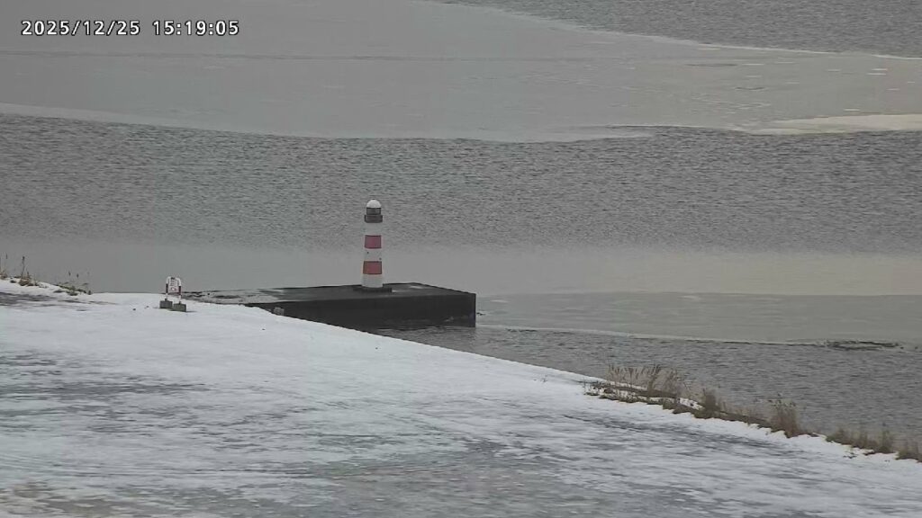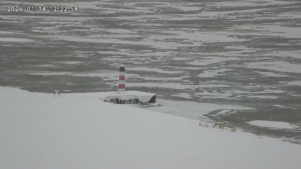 凍った氷の上にうっすらと雪が積もり,かなり凍っているように見えますが,氷はまるで厚くなっていません。