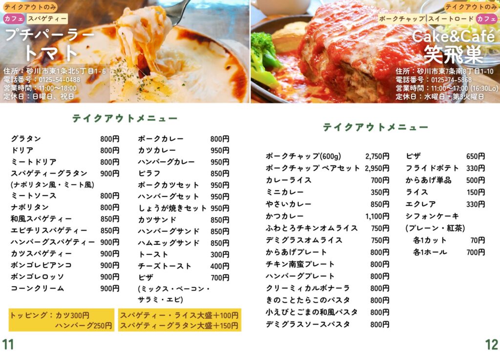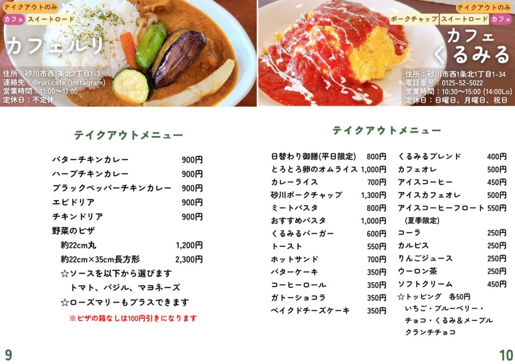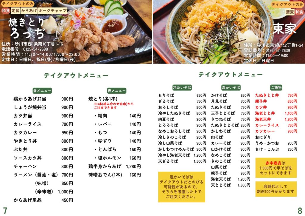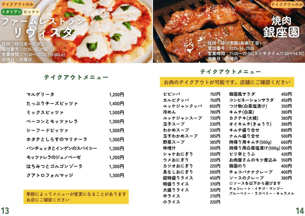 砂川市地域おこし協力隊が作成したテイクアウト・デリバリーの情報です。