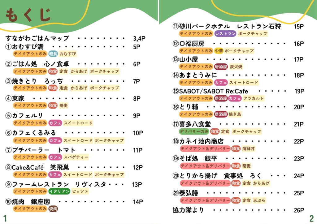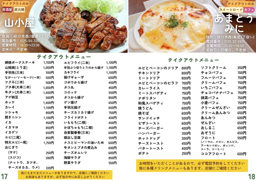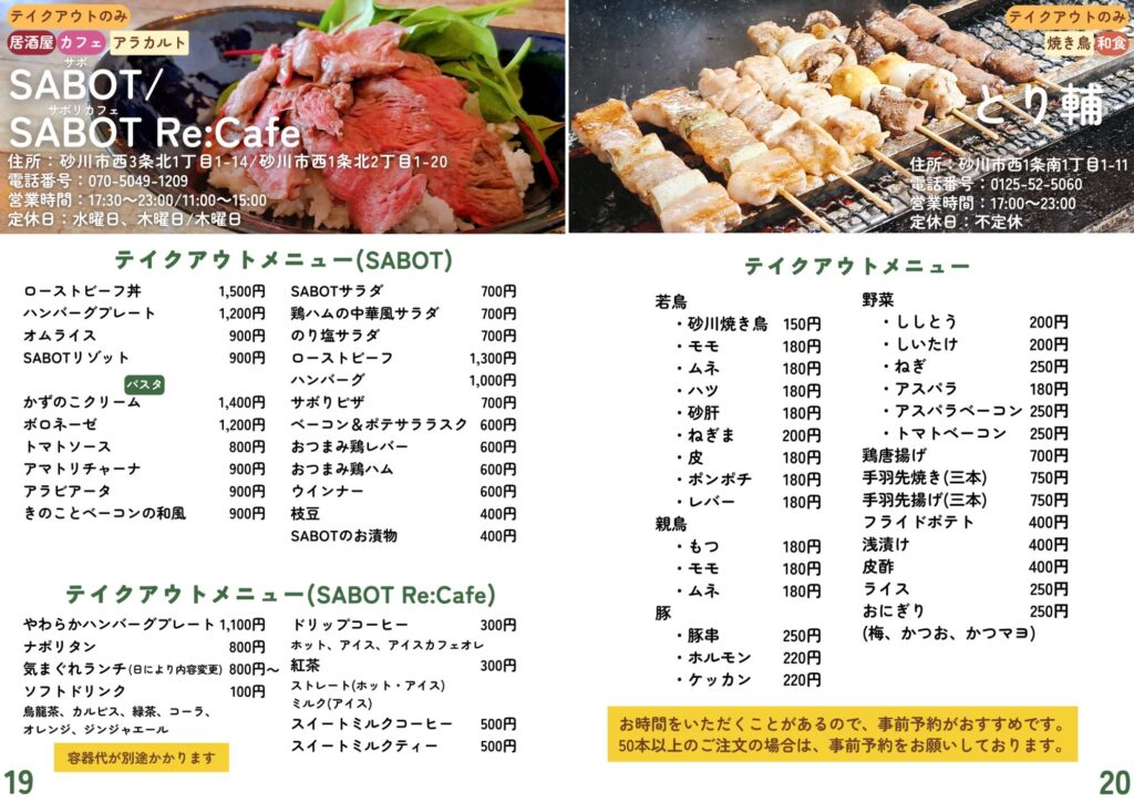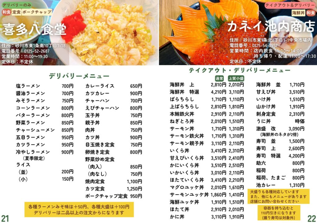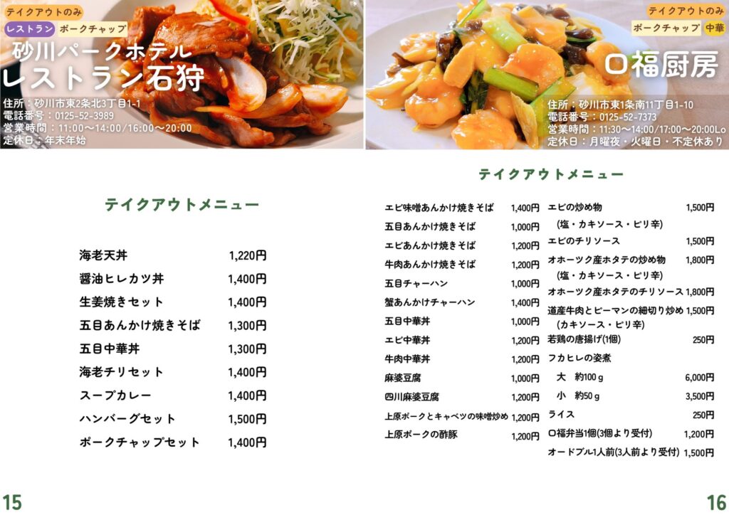 砂川市地域おこし協力隊が作成したテイクアウト・デリバリーの情報です。