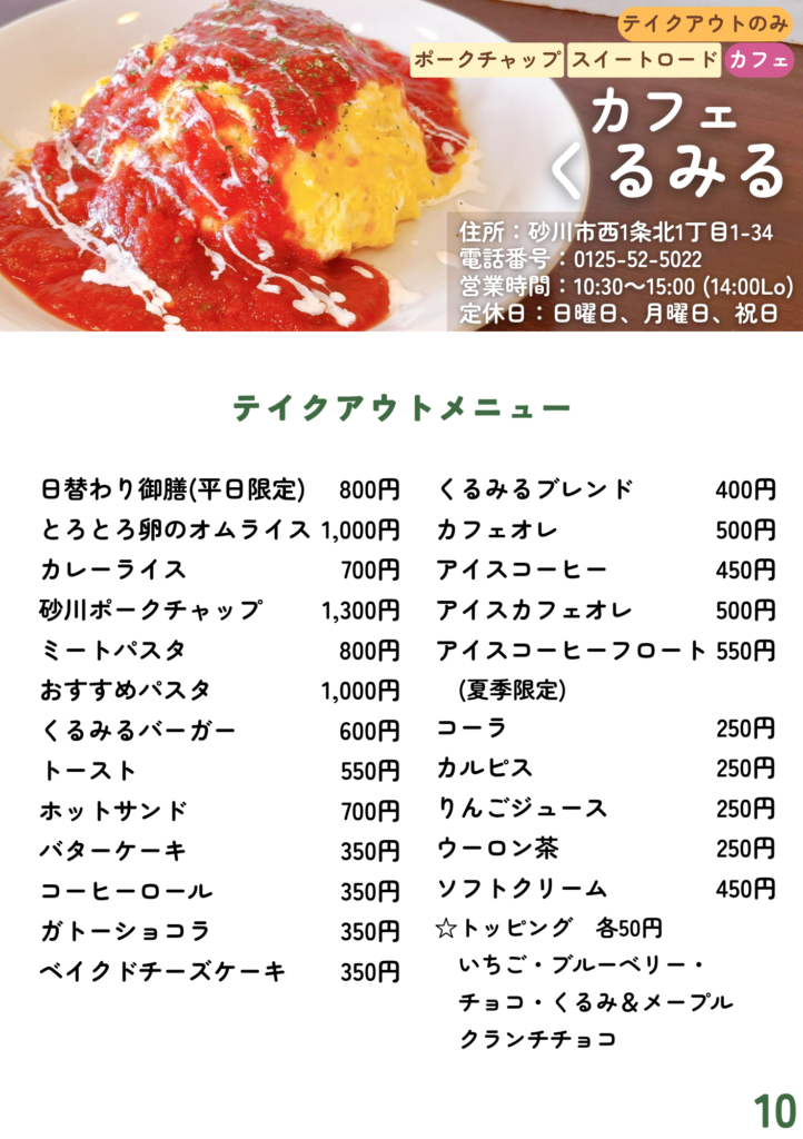 くるみるは、ポレポレと同じ社会福祉法人くるみ会が運営しています。皆さんに来て、見て欲しいという思いから“来る”“見る”「くるみる」という店名にしました。美味しい食事とゆっくりとした時間を過ごして下さい。