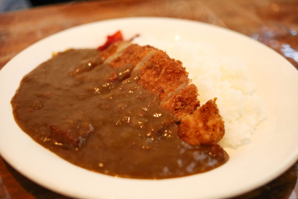 オーナーのこだわりで地元の食材を使用し、サックとジューシーなカツにちょっぴり辛めのスパイス香るカレー。