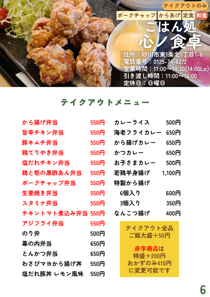 「若鶏半身揚げ」や「唐揚げ」そしてリーズナブルな価格で、人気のお弁当各種販売するテイクアウト可能なお店になります。